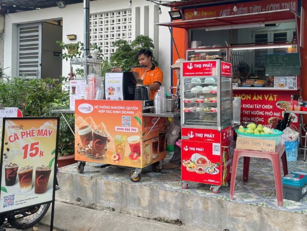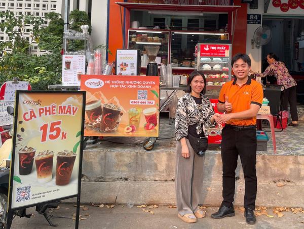 Thay vì mở rộng mặt bằng hoặc đầu tư một quán cà phê mới, chị Nhi đã lựa chọn mô hình xe cà phê take away Express Cafe, đặt ngay tại điểm kinh doanh hiện có. Giải pháp này giúp tận dụng tệp khách sẵn có, đồng thời mở rộng danh mục sản phẩm mà không làm tăng chi phí vận hành.